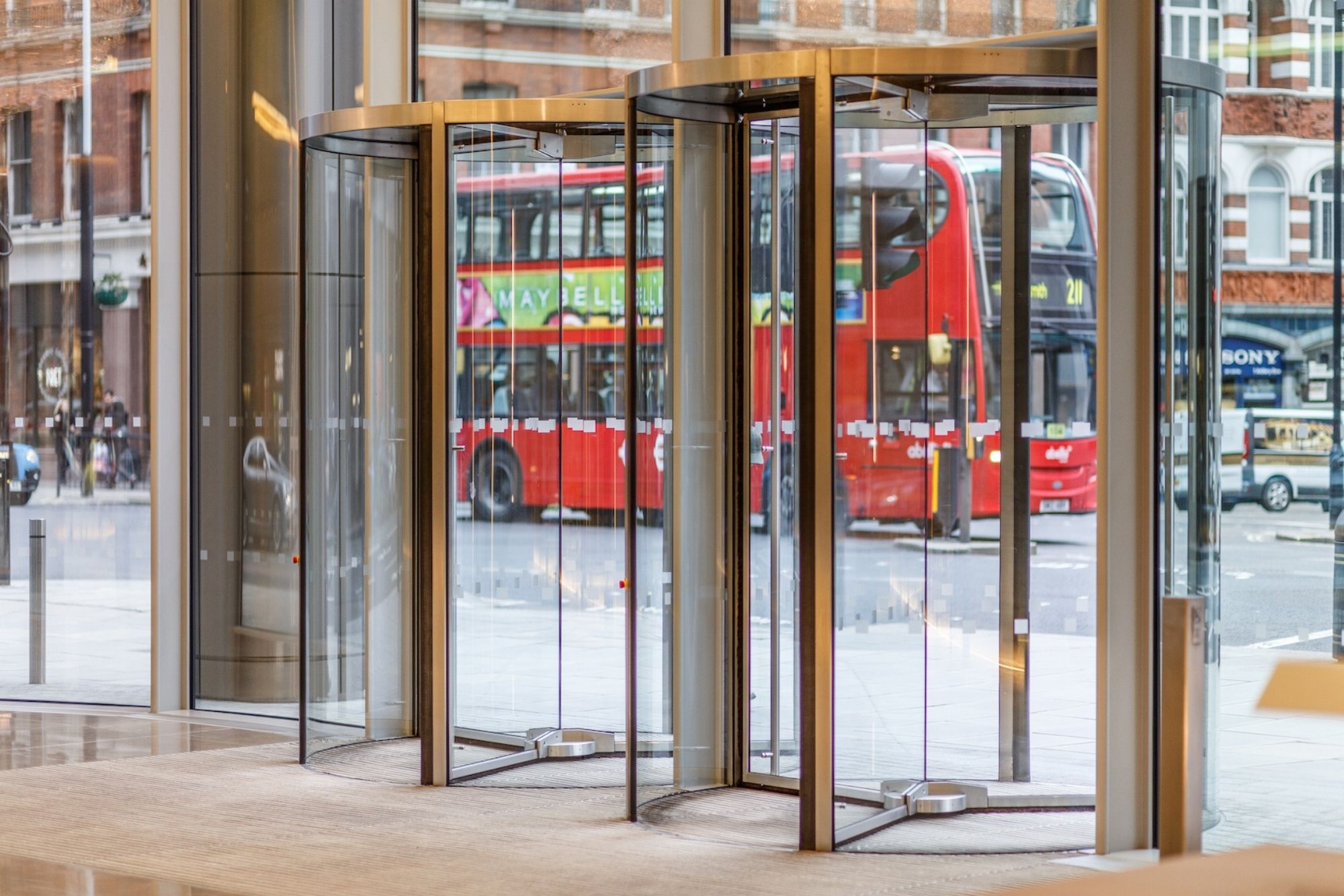 Bij 62 Buckingham Gate is de entree-ervaring ontworpen om aan te sluiten bij de gedurfde architectonische visie van het gebouw. Vier op maat gemaakte Full Glass CFV 2400 AY draaideuren creëren een naadloze overgang tussen de openbare ruimte en het levendige interieur van het kantoor.